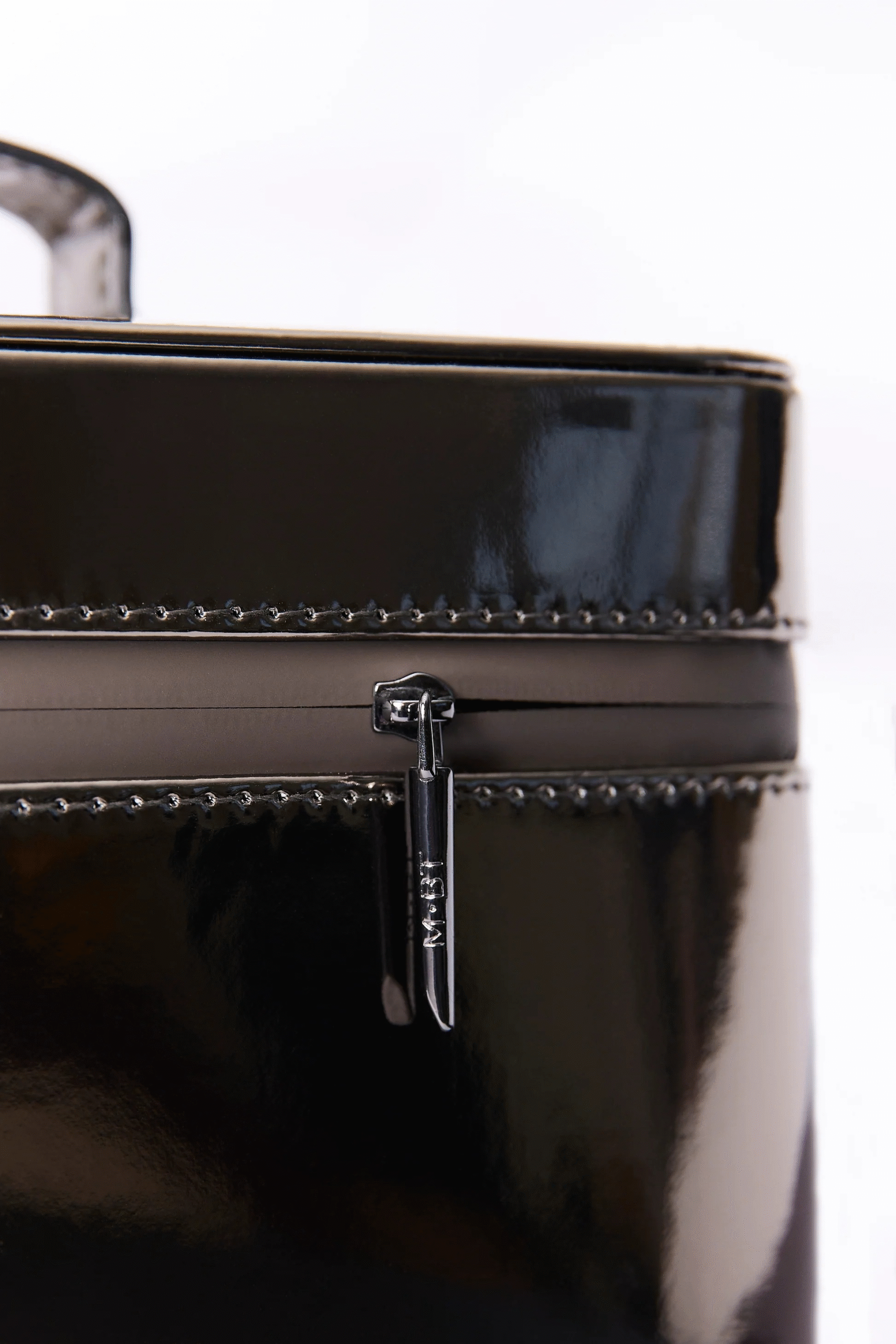 Išorė iš blizgios veganiškos odos, suteikiančioos grožio lagaminėliui išskirtinį ir premium įvaizdį.