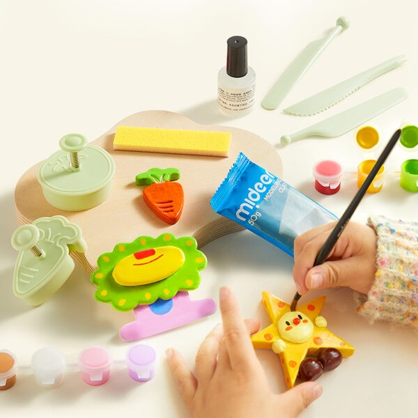 Aukšta kokybė ir saugumas: mideer molis yra saugus, netoksiškas ir lengvai modeliuojamas. Išdžiuvę darbai išlaiko formą ir spalvą, o blizgus lakas suteikia ilgalaikę apsaugą ir estetinį vaizdą.